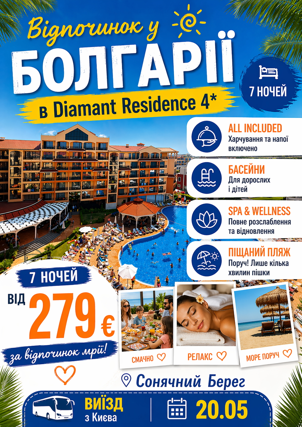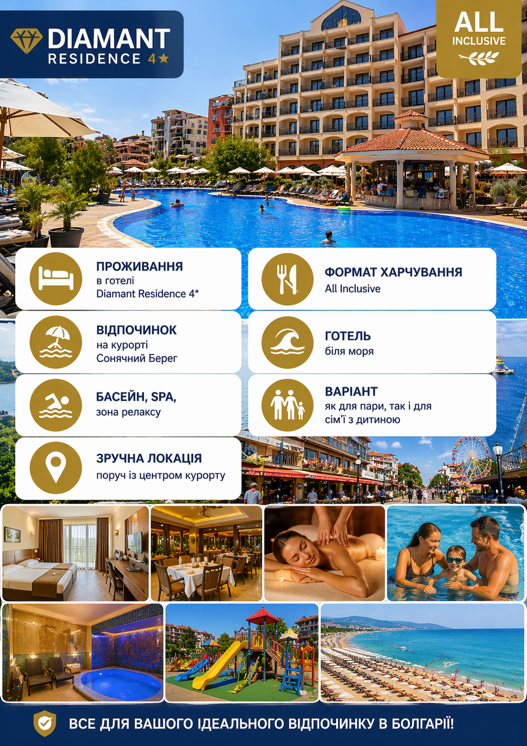 Diamant Residence 4* — комфортний відпочинок у Болгарії без переплат.