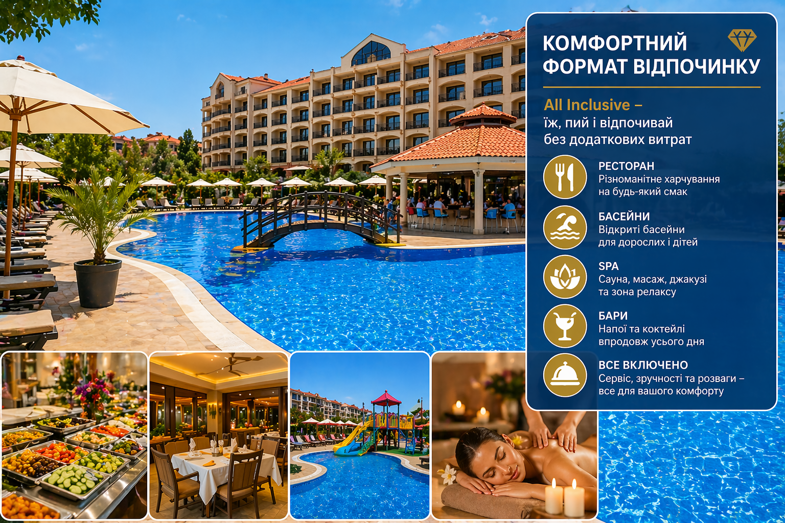 • All Inclusive — їж, пий і відпочивай без обмежень