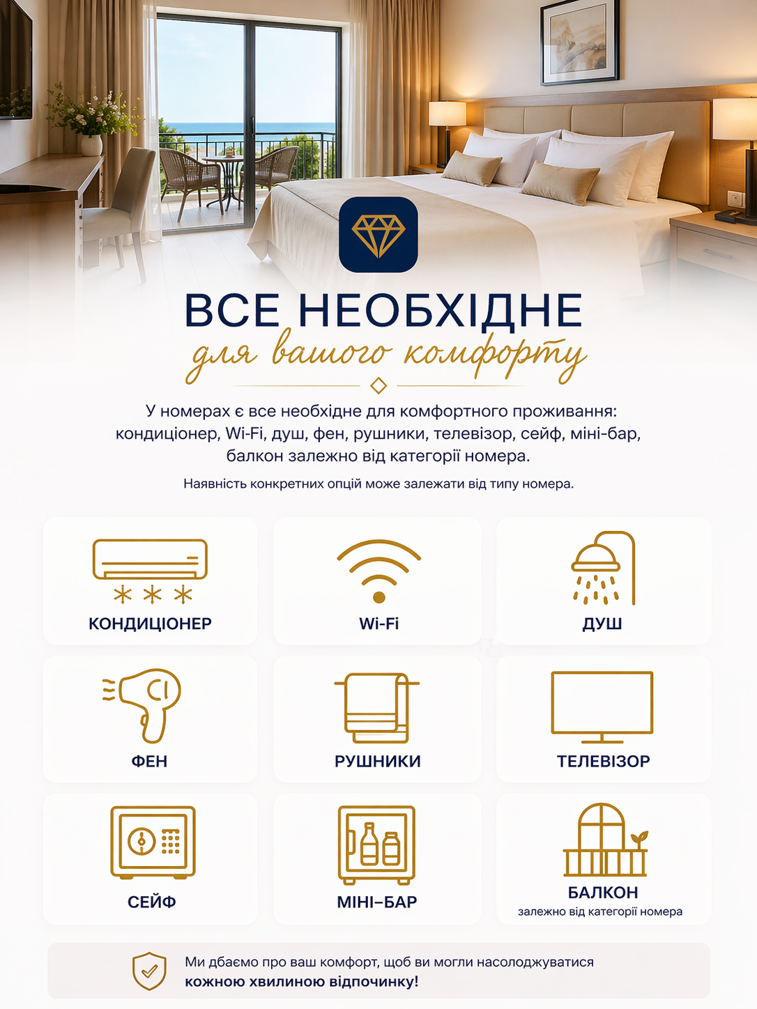 • Живеш у Diamant Residence 4* — комфорт без переплат